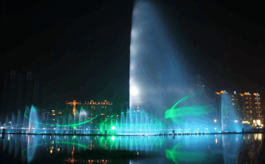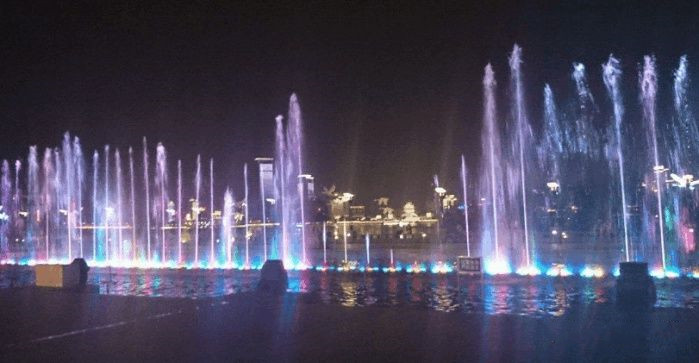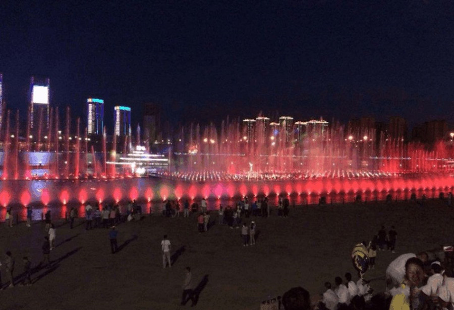 秋水音樂(lè)噴泉,位于南昌市紅谷灘新區(qū)的贛江之濱,共配置了包括中心主噴、環(huán)形高噴、圓形搖擺噴泉和數(shù)控跑泉在內(nèi)的共22個(gè)水景,水景長(zhǎng)達(dá)800米,共裝有636臺(tái)水泵、1591個(gè)噴頭,為亞洲最大的音樂(lè)噴泉群。