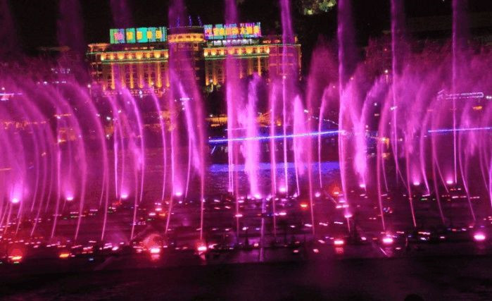 洛陽(yáng)音樂(lè)噴泉,又稱洛陽(yáng)南湖音樂(lè)噴泉、開(kāi)元湖音樂(lè)噴泉。位于洛陽(yáng)市開(kāi)元大道南側(cè),展覽路中段,與洛陽(yáng)市政府大樓相毗鄰。它擁有多項(xiàng)世界之最:369米的世界上最長(zhǎng)數(shù)控跑泉,12萬(wàn)平方米的世界最大面積的綜合水景,世界高科技百變噴泉水形,世界上最精確的數(shù)控定位系統(tǒng),世界最長(zhǎng)的變頻陣列。