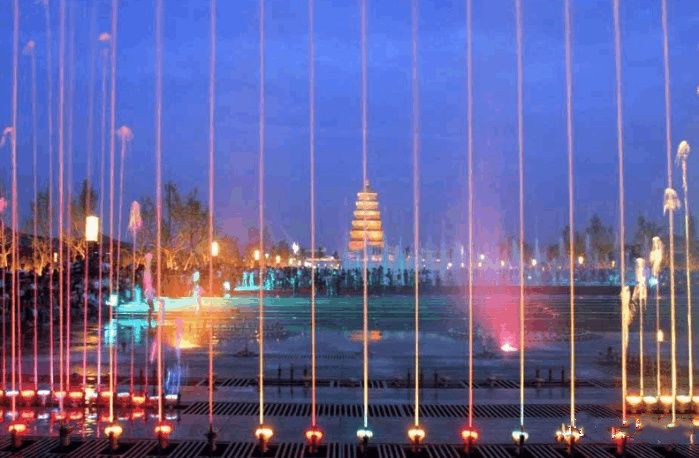 西安大雁塔音樂(lè)噴泉,是目前全國(guó)乃至亞洲最大的音樂(lè)噴泉廣場(chǎng)。噴泉共計(jì)有水泵1360臺(tái),變頻器1124臺(tái),彩燈3300余盞,噴頭2000多只。噴泉和附屬土建資金投入約5億元。