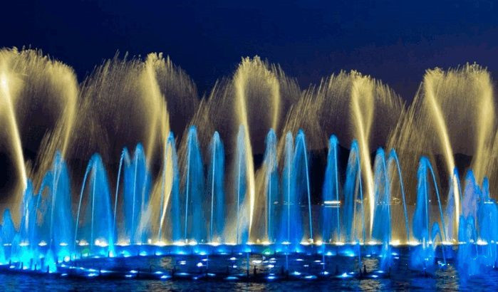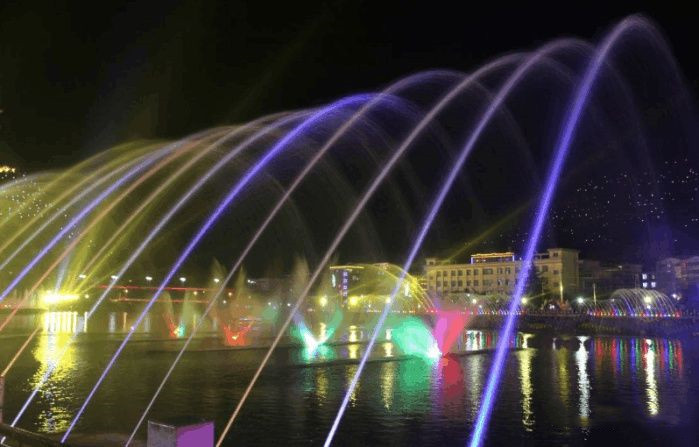 鳳縣嘉陵江音樂(lè)噴泉,位于陜西鳳縣嘉陵江與小峪河交匯處。鳳縣嘉陵江音樂(lè)噴泉噴射高程達(dá)186米。要知道,鳳縣只是一個(gè)人口只有13萬(wàn)人的小縣城。不僅如此,鳳縣還建造4米的LED太陽(yáng)能人工月亮,在縣城周邊山體上共設(shè)置2700余個(gè)人造星星。要打造“月亮之上、月光之城”。